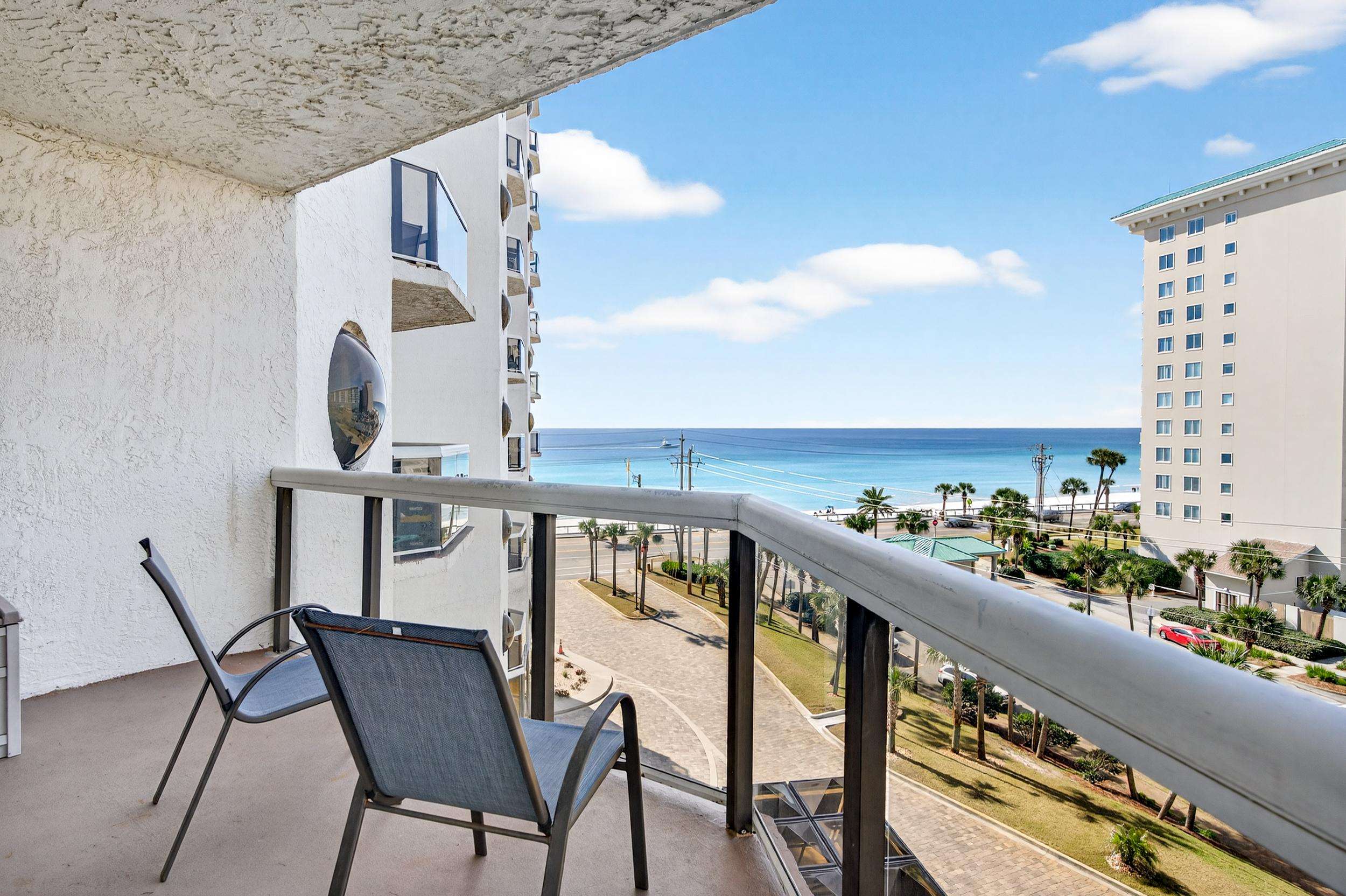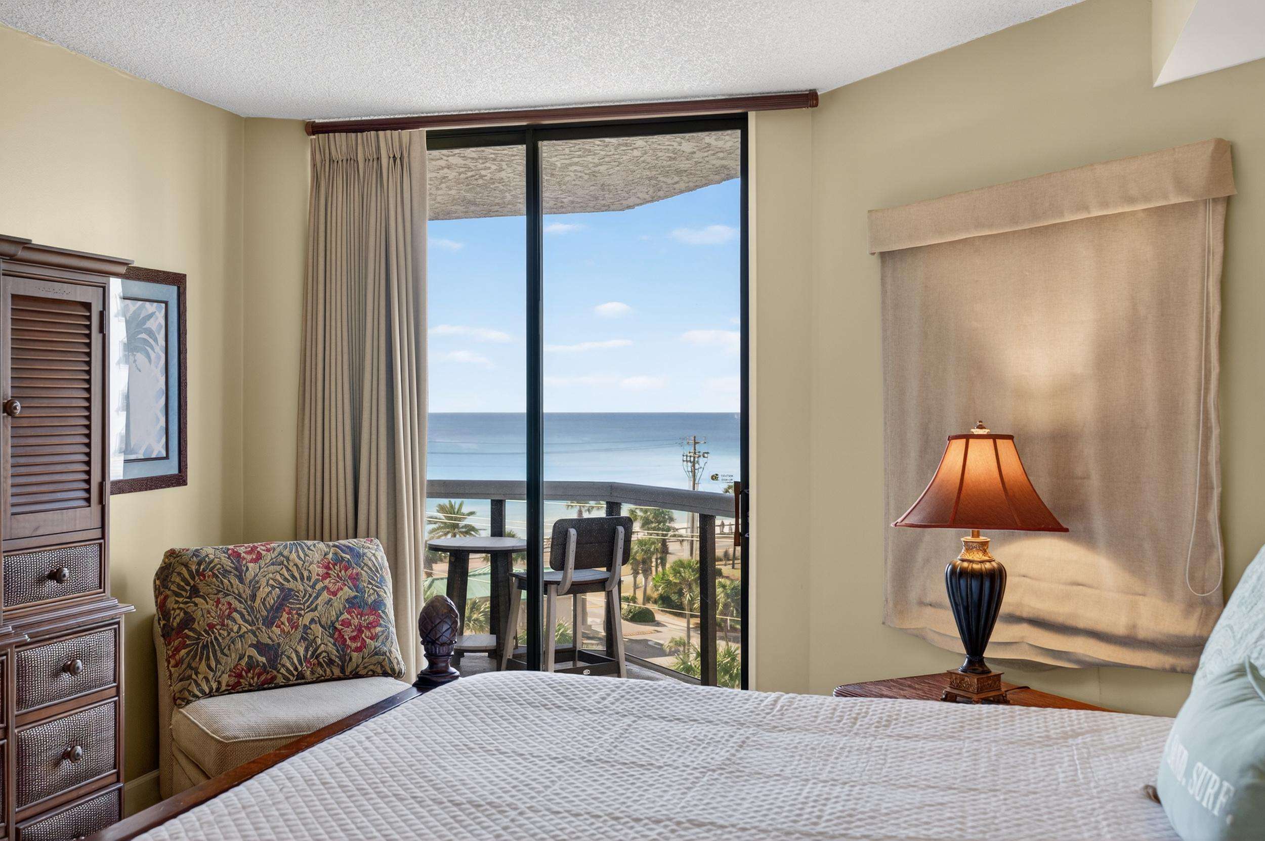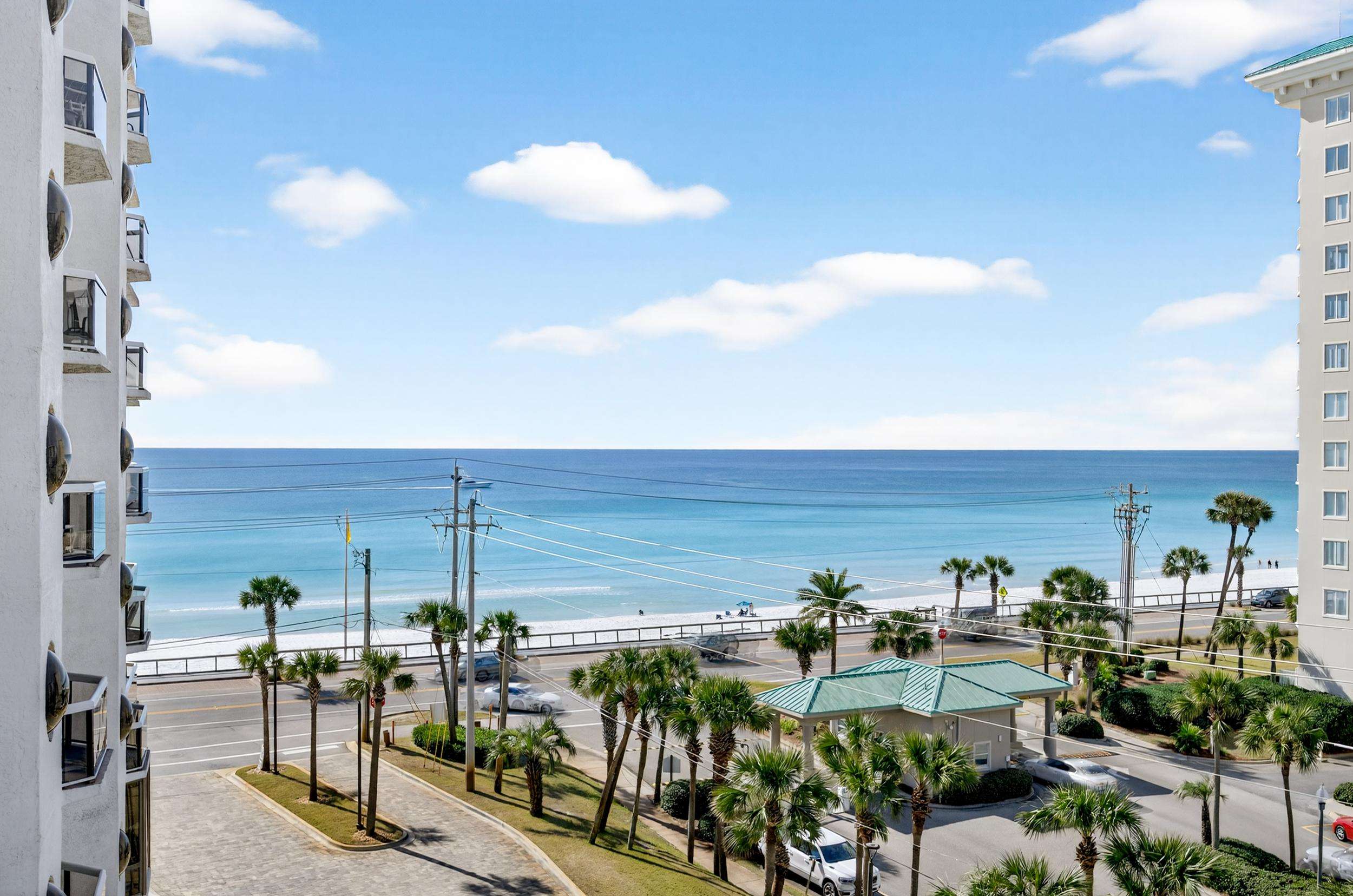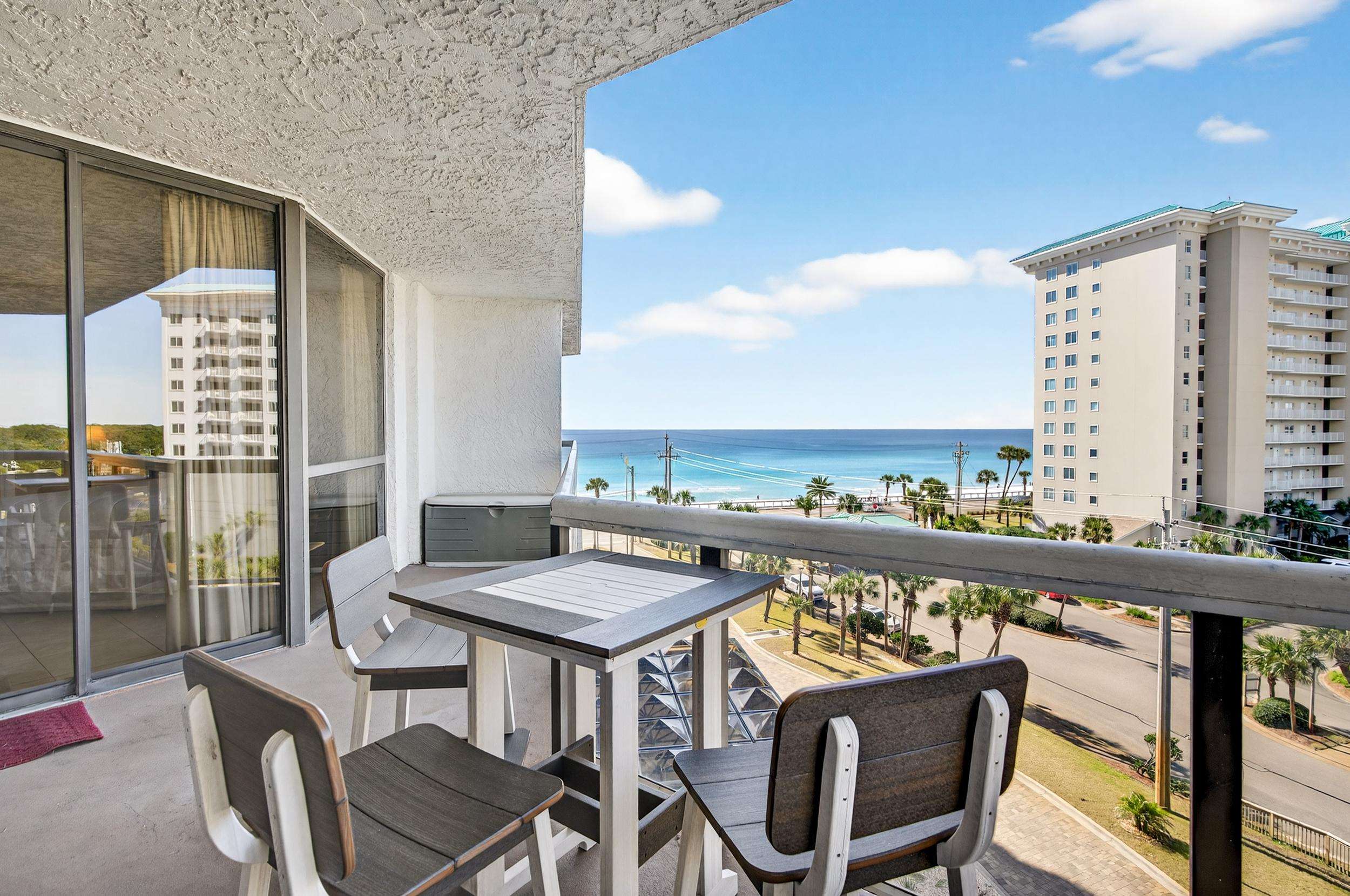 Our beautiful 1,535 square feet, 3 bed/3 bath condo has awesome ocean views. The condo has an spacious split floor plan with floor to ceiling glass doors opening onto the balcony. The balcony runs the legth of the condo and has access from each bedroom and living area.