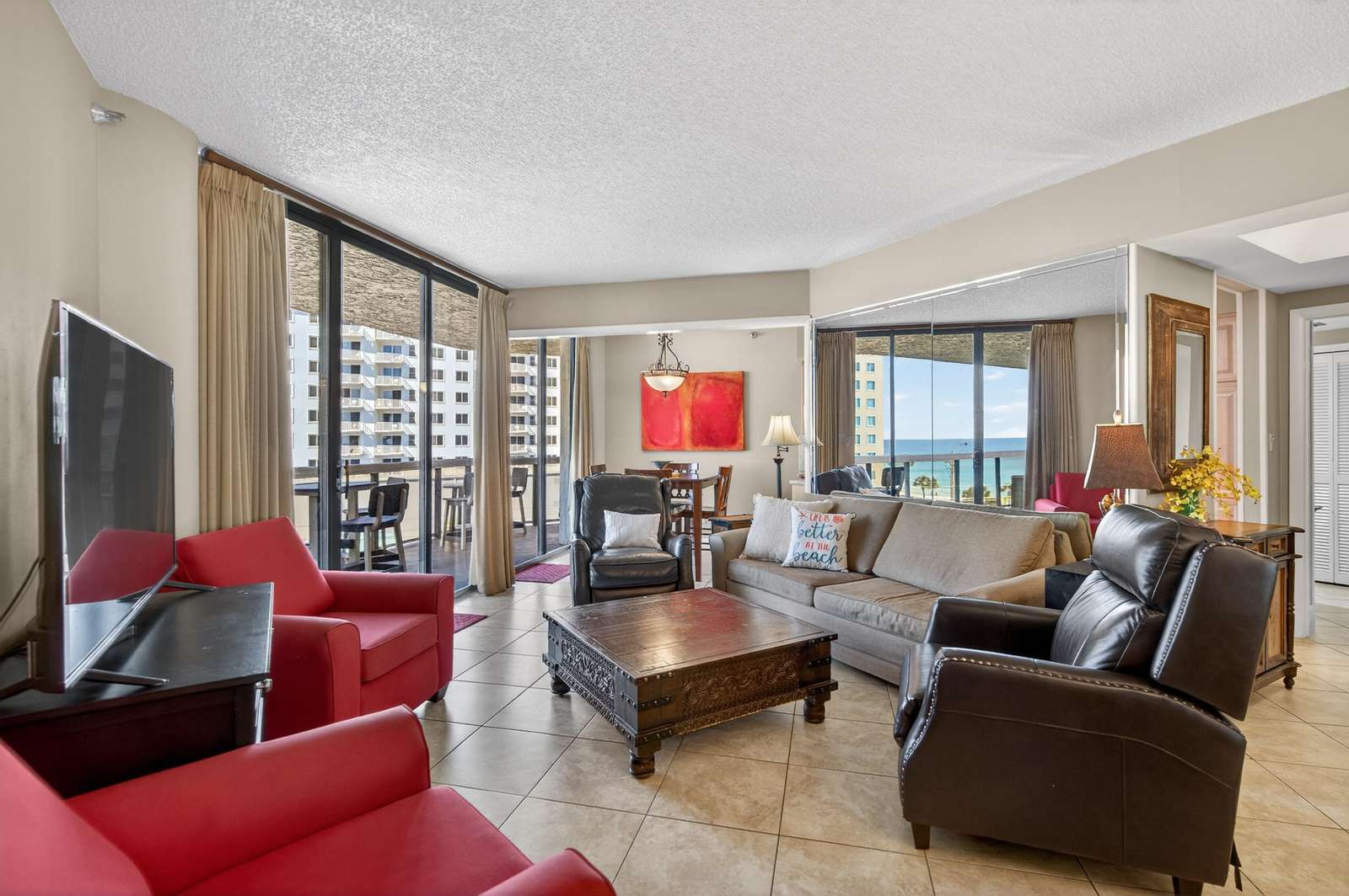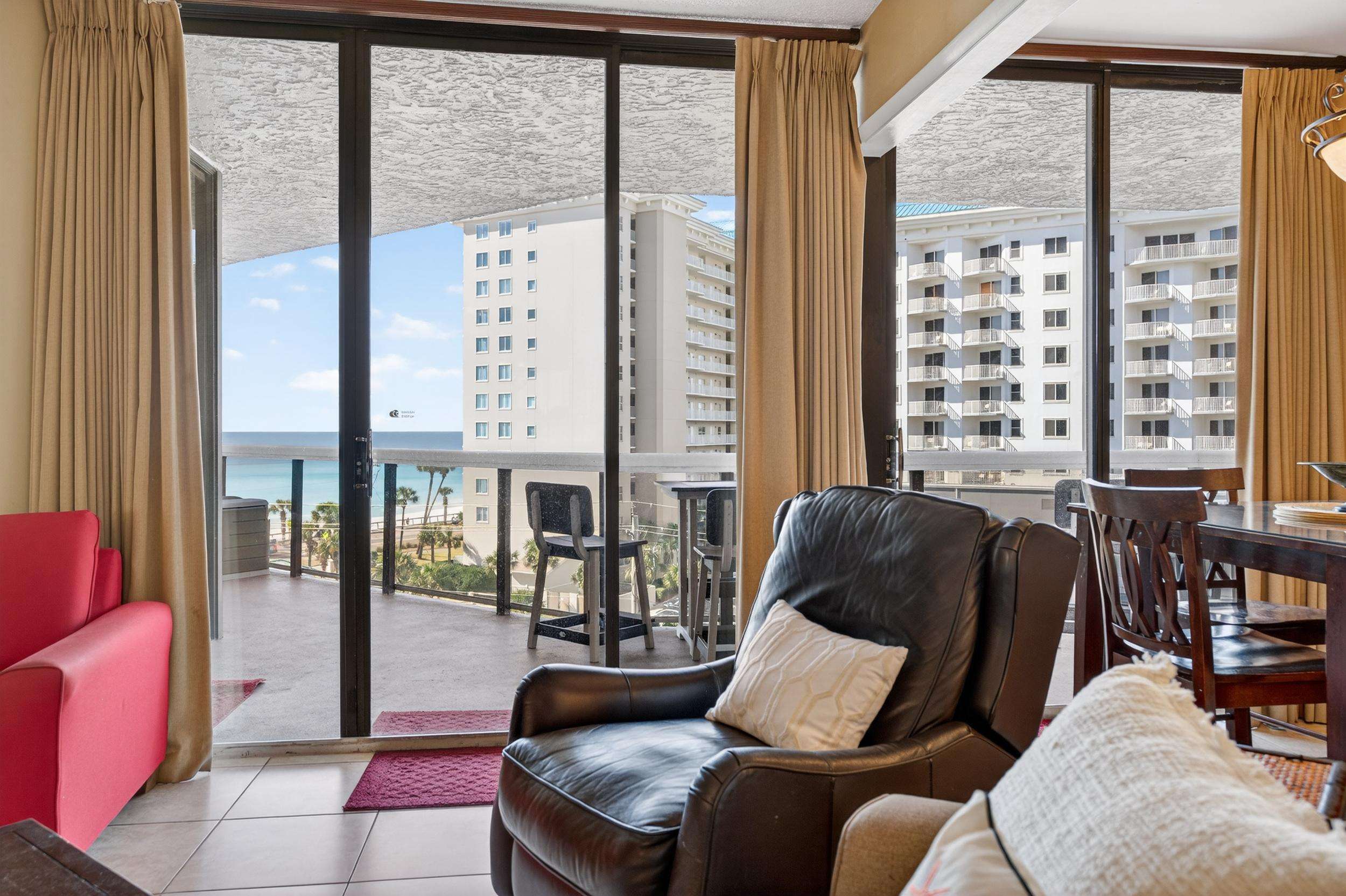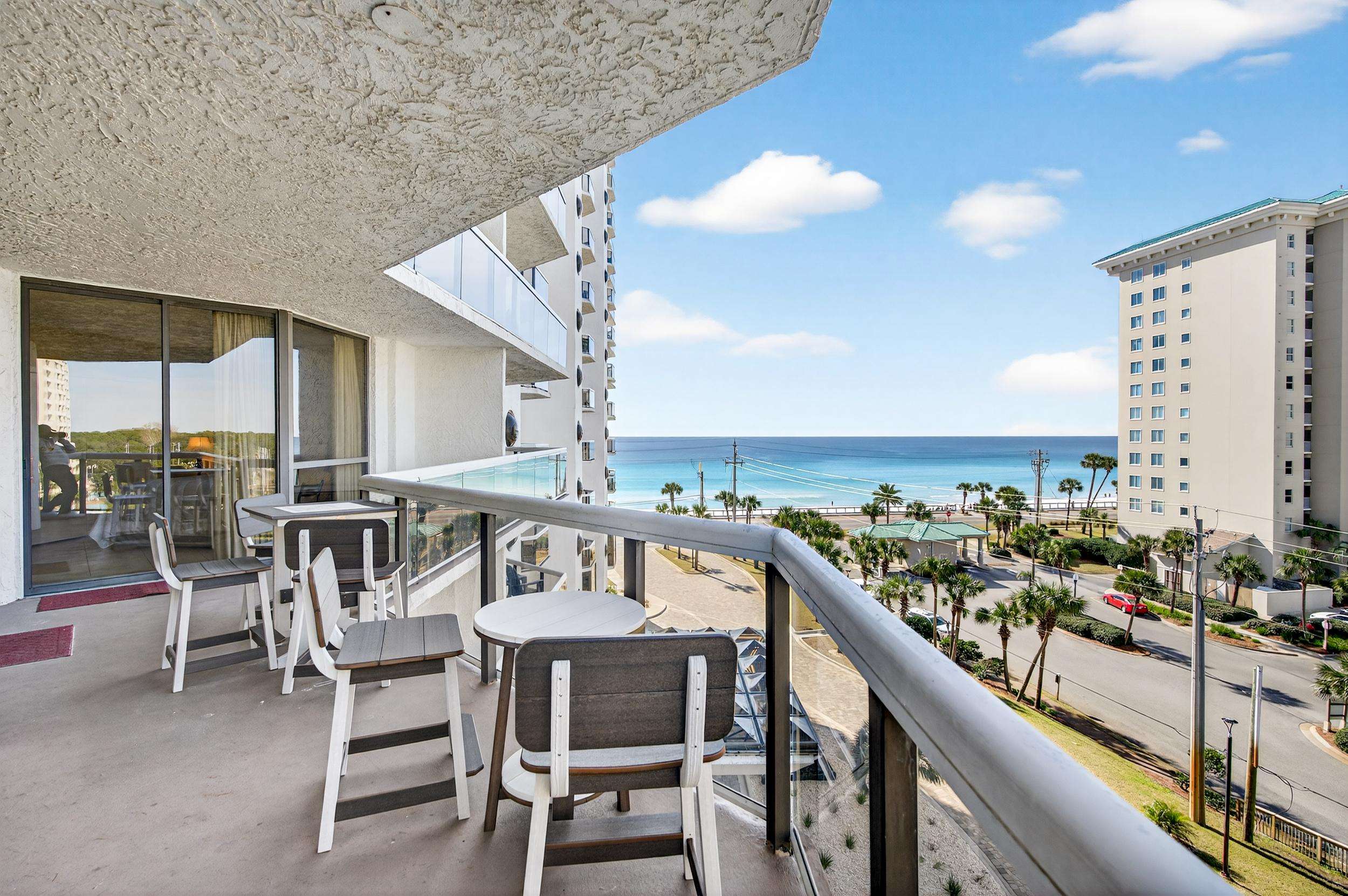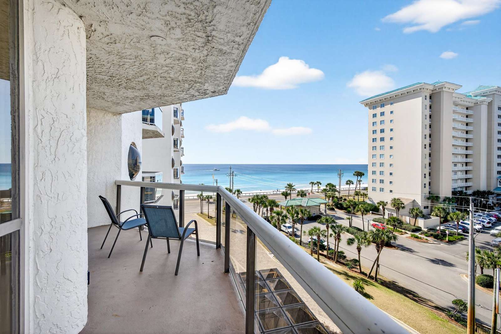 Our beautiful 1,535 square feet, 3 bed/3 bath condo has awesome ocean views. The condo has an spacious split floor plan with floor to ceiling glass doors opening onto the balcony. The balcony runs the legth of the condo and has access from each bedroom and living area.