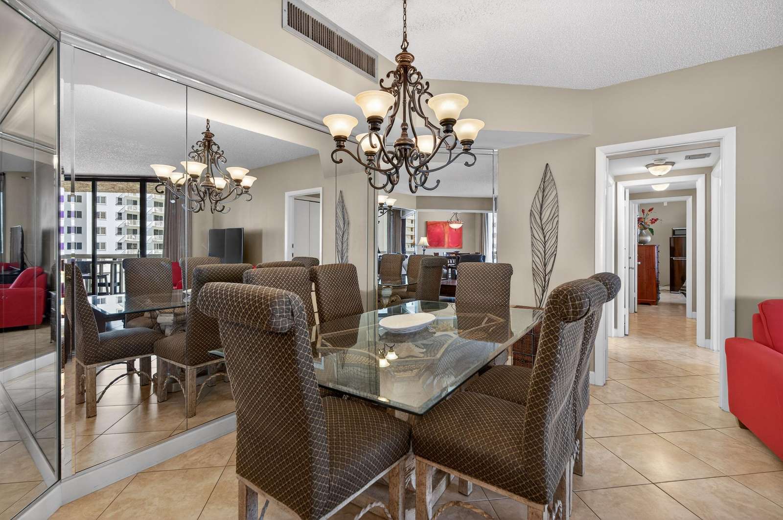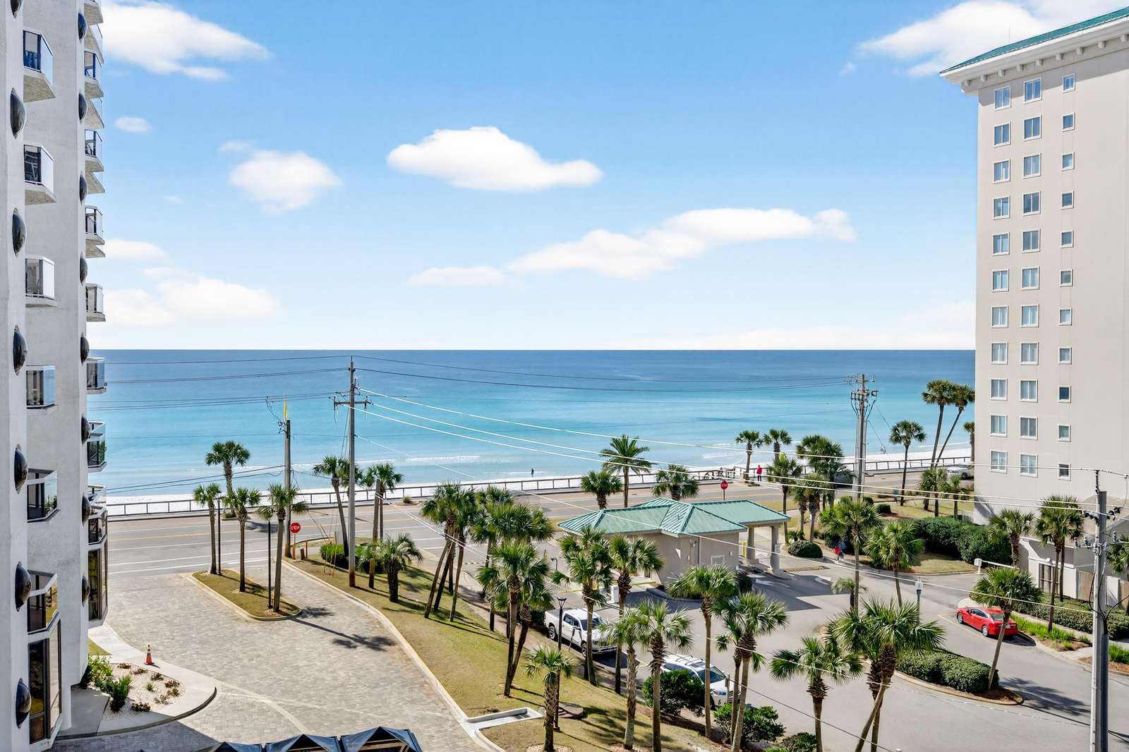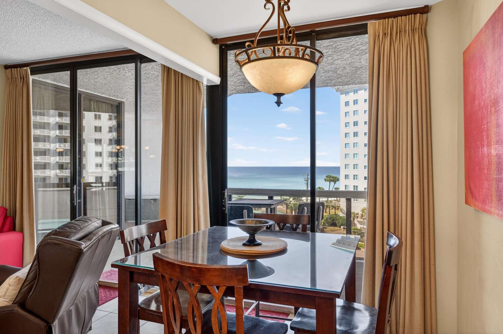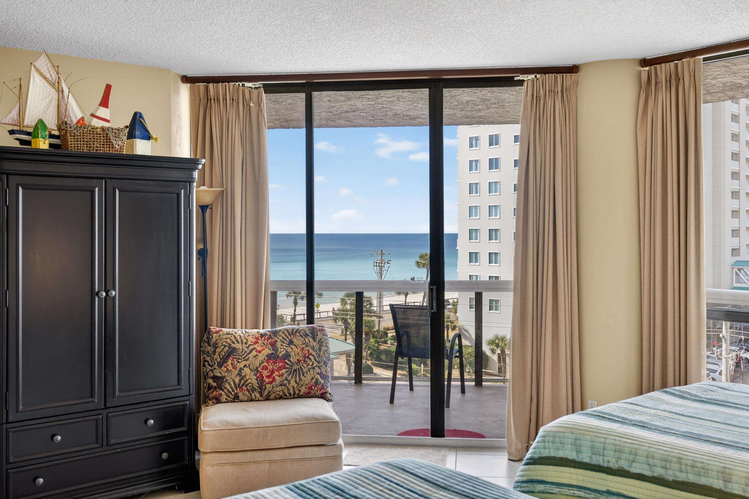Our beautiful 1,535 square feet, 3 bed/3 bath condo has awesome ocean views. The condo has an spacious split floor plan with floor to ceiling glass doors opening onto the balcony. The balcony runs the legth of the condo and has access from each bedroom and living area.
